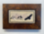 Inlays: This is where our wood carvings merge with crushed and pigmented mica stone in order to bring you these beautiful framed inlay tile panels. Each piece is unique to itself, no two are completely identical. The mica flow will always vary... at times a piece will have deep iridescent and reflective characteristics.